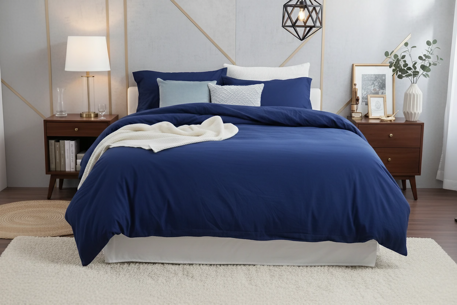 Add depth, warmth, and luxury to your bedding with our Deep Navy Blue Cotton Duvet Cover Set. Whether you’re updating your master bedroom, decorating a guest room, or curating a chic Airbnb, this bedding offers a timeless look with unmatched comfort.